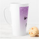 Personalisierte Latte-Tasse mit trendigem Design. Der Hintergrund ist eine lila Farbskala mit einem Fake, das von oben nach unten glänzt. Ein Paar von gürtelig niedlichen Wimpern unter dem Glitzer-Bild.