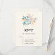 RSVP-Karte mit einer hübschen Aquarellbilder. Ein Blumenstrauß mit rosa und blauen Blume, umgeben von grünen Blätter und Zierpflanzen.
