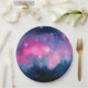 Papier Teller mit einem schönen abstrakten Design in Rosa und Blau. Weiße Sterne sprengen durch dieses Bild des Kosmos. Trippig und cool. Ein weißer Kreis mit einem schwarzen Rand, der oben mit Ihrem Text überlagert ist.