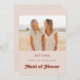 Eine einfache und elegante Fotokarte, um Ihrer Brautjungfrau zu danken. Ein Retro-Chic-Thema: adoptier dieses Vintage und stilvolle typografische Design für Ihre Hochzeitsarbeit mit einem pfirsichrosa Thema. Einfach zu mischen und mit unserer ähnlichen Schreibwaren in gebranntem Orange, Terrakotta und braunem Zucker erhältlich. Vollständig anpassbare Textfarben und Hintergründe.