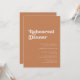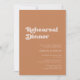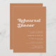 In der Nacht vor... Vergewissern Sie sich, dass alles perfekt für den großen Tag ist; laden Sie sich ein, ein modernes Probe für Ihr Hochzeitsessen zu genießen. Ein Retro-Chic-Thema: adoptier dieses leicht Vintage und stilvolle typografische Design für Ihr Hochzeitsgeschenk mit einem verbrannten Orange-, Terrakotta- und Braun-Zucker-Thema. Vollständig anpassbarer Text, Farben und Hintergrund.