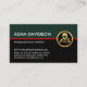 Ein smaragdgrün und schwarz lackiertes Cover wird durch eine rote Grenzlinie abgegrenzt. Oben liegt Ihr Name und Ihr Titel mit dem Logo des Goldchauffeers, das Sie in die entgegengesetzte Richtung verwenden können. In der unteren links Ecke finden Sie den Firmennamen und die Kontaktdaten. Das gleiche Design wird auf der Seite der roten Grenze mit dem goldenen Logo verwendet. Rechts sehen Sie Ihren prestigeträchtigen Namen, die Kontaktdaten und eine Slogan-Beschriftung an der Basis. ; Sie können die Beschriftungen in den Slogan ändern, um Ihre eigenen Servicebedürfnisse Anzug. Dies ist eine großartige berufliche Karte für Chauffeure. #chauffeur #driver #taxiservice #taxidriver #privatedriver #carhire #designateddriver #rideshare #car