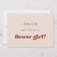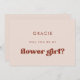 Werden Sie meine Blumen Girl-Vorschlagskarte sein? Ein Retro-Chic-Thema: adoptier dieses Vintage und stilvolle typografische Design für Ihre Hochzeitsarbeit mit einem pfirsichrosa Thema. Einfach zu mischen und mit unserer ähnlichen Schreibwaren in gebranntem Orange, Terrakotta und braunem Zucker erhältlich. Vollständig anpassbare Textfarben und Hintergründe.