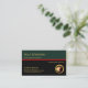 Die obere grüne Schicht hat Ihren prestigeträchtigen Namen und Titel. Auf dem Weg zur rechten Wand ist eine Slogan-Option für Sie zu veröffentlichen Ihre Dienste. Unter der Beschriftung ist ein goldenes Mannschaftslogo, das Sie verwenden können. Firmenname und Kontaktdaten befinden sich in der unteren links Ecke der Karte.