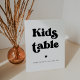 Kindertisch Hochzeitszeichen. Ein Retro-Chic-Thema: adoptier dieses etwas Vintage und stilvolle typografische Design für dein Hochzeitsgeschenk mit einem klassischen Schwarz-Weiß-Thema. Anpassbare Textfarben und Hintergründe.