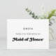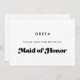 Eine einfache und elegante Textkarte, um Ihrer Brautjungfrau zu danken. Ein Retro-Chic-Thema: adoptier dieses etwas Vintage und stilvolle typografische Design für dein Hochzeitsgeschenk mit einem klassischen Schwarz-Weiß-Thema. Anpassbare Textfarben und Hintergründe.