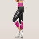 Diese modernen, schwarzen Workout-Leggings zeichnen sich durch ein elegantes und zartes, weißes Blumendesign auf dunklem magenta-Hintergrund auf dem Bund und den Beinen aus. Einfach anpassbar, indem Sie auf beiden Seiten Ihren Namen auf einem kalligraphisch weißen Schriftart hinzufügen.