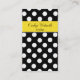 Elegante Damen-Visitenkarte, getan in einem Schwarzweiss-Tupfenmuster. Ein gelber mutiger Streifen, über der Spitze und die feste Gelbrückseite hat den schwarzen Text, der bereit ist, mit Ihren Informationen zu personifizieren. Ein reizendes stehen heraus die Karte, die für irgendeine Art Beruf oder Geschäft groß ist.