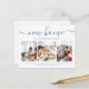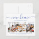 Eine stilvolle und schicke Foto neue Zuhause-bewegende Ankündigung Postkarte in blau gefärbte Kalligraphie und sans Serif Schriftart. Personalisieren Sie es mit Ihren eigenen Daten.