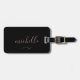 Moderne schwarze Gepäckmarke mit goldenem Schriftzeichen und Imitat-Swash. Name und Adresse können auf der Rückseite hinzugefügt werden.