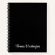 Modernes schwarzes Notizbuch mit Ihrem Monogramm-Namen in einem stilvollen weißen Skript.