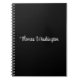 Einfaches modernes schwarzes Notizbuch mit Ihrem Monogramm-Namen in einem fett-stylischen weißen Skript. Passen Sie bei Bedarf die Größe des Skript-Schriftartes im Editor des Entwurfstools für längere oder kürzere Namen an.