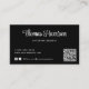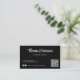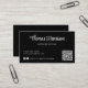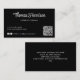 Elegante, berufliche Visitenkarte mit Ihrem Namen oder Ihrer Marke in einem fett-stylischen, weißen Drehbuch und Geschäftstyp oder Titel in weißer Schrift. Geben Sie Ihre Website-Adresse ein, um einen QR-Code zu erstellen, den Kunden und Kunden nach einer Liste Ihrer Produkte, Dienstleistungen, Stunden usw. suchen können, und fügen Sie Ihre Instragram- und Facebook-Benutzer-ID hinzu, damit die Kunden Ihnen folgen und sich mit Ihnen in sozialen Medien verbinden können. Sie können zusätzliche Informationen auf der Rückseite hinzufügen oder diese leer verlassen.