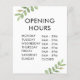 Die Künstlerischen Äpfel präsentieren ein elegantes und übersichtliches "Shop Opening Time"-Zeichen, das sich perfekt für die Darstellung Ihrer Geschäftszeiten eignet. Dieses Design eignet sich ideal für Schaufenster und hilft den Kunden, beruflich und stilvoll zu wissen, wann Sie geschäftlich offen sind.