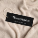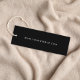 Elegante Kleidung, Accessoires, Schmuck, Boutique, usw., schwarzes Label hängen Anhänger mit Ihrem Namen oder Ihrer Marke in einem stilvollen weißen Signaturskript gezeigt. Fügen Sie unten und auf der Rückseite einen zusätzlichen Text in einfacher, moderner weißer Schrift hinzu.