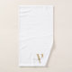 Stilvolle Girly Feminine Moderne White and Gold Monogram Initial Name Signature Script Custom Personalisiert Handtuch. Mit einem Vornamen (oder Familiennamen) in einem hübschen handgeschriebenen Stil Swash Schwanz Typografie (oder Kalligrafie) mit Monogramm Initial in Gold und Schwarz auf weißem Hintergrund. Große stilvolle feminine Hauswärmeschenke, auch für Geburtstag, Hochzeit, Brautparty, Muttertag, süße 16 Geburtstagsparty, Junggeselinnen-Abschied, Jubiläumsgeschenk und für Graduiertenfeier. Es ist für das Mädchen, das stilvolle Eleganz liebt.