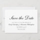 Diese klassische formelle Hochzeit speichern Sie die Dattelkarte mit elegantem, stilvollem schwarzen Skript und kleinen Hauptstadt Schriftart auf einem weißen Hintergrund. Das Gegenteil ist schwarz.
