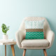 Ein trendiges Musterkissen mit smaragdgrünen Chevrons und Polka Punkten auf weißem Hintergrund. Die Farben smaragdgrün und das Zickzack Muster sind Hot Mode Trends von 2013.