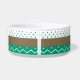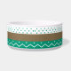 Eine trendige Haustierschüssel mit smaragdgrünen Chevrons und Polka Punkten auf weißem Hintergrund. Personalisieren Sie das, indem Sie den Namen Ihres Haustieres zu diesem Hot-Fashion-Trend von 2013 hinzufügen.
