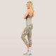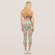 Stilvolle Leggings mit einem Anne Londez Halloween-Muster, inspiriert von Steampunk & viktorianischer Ästhetik, mit dem Trailing Schädelweine mit Spinnen in Orange auf einem angesagten grünen Leinentextur