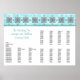 Lieblich Hochzeitsbesteck Plakatposter in einem südwestlichen inspirierten Look. Das helltürkisfarbene Damast-Muster an der Oberseite ist sehr schön silber und die Dekoration türkis. Der gesamte Text ist bereit für Ihre Hochzeit zu personalisieren. Dieses Diagramm erlaubt 11 Tische von 10 Personen, zögern Sie nicht, mich zu kontaktieren, um eine Tabelle zu erstellen, die die Anzahl der Gäste und Tische an Ihrem Hochzeitsempfang.