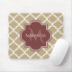 Stilvolle Tan Quatrefolie Burgundy Monogram und Na Mousepad