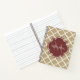 Ein stilvolles, marokkanisches Vierblattmuster-Standardformat-Notebook mit einem bordeauxfarbenen Abzeichen, das Sie personalisieren können, indem Sie Ihren Namen und Monogramm zuerst hinzufügen. Dies ist Teil der Warm Sand und scharfen Apple Spring Quatrefolien Kollektion.