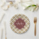 Stilvolle Tan Quatrefolie Burgundy Monogram und Na Pappteller