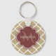 Ein stylisches marokkanisches Quarrefolienmuster einfaches Schlüsselanhänger mit einem bordeauxfarbenen Abzeichen, das Sie personalisieren können, indem Sie Ihren Namen und Monogramm zuerst hinzufügen. Dies ist Teil der Warm Sand und scharfen Apple Spring Quatrefolien Kollektion.