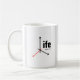 "Unsere elegante weiße Tasse mit dem einfachen, aber tiefen Wort "Leben". Das Wesen der Existenz mit jedem Schluck zu verflechten, indem das Wort gelassen wird, dient als tägliche Erinnerung, jeden Augenblick zu schätzen und das Leben voll zu leben."