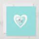 Stilvolle quadratische Hochzeitseinladungen in Aquablau mit einem farbigen Streifen auf der links Seite der Einladung. Die süße Grafik eines weißen Herzens hat das Monogramm von Braut und Bräutigam innen. Text in dunkelgrau ist vollständig anpassbar, um Ihre Bedürfnisse Anzug. Liebliche Farbkombination für jedes Jahr.