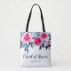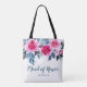 Moderne Trauzeugin mit hellrosa Aquarelltaschen, blauen und grauen Rose auf weißem Hintergrund. Text kann angepasst werden.