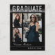 Moderne, moderne und stilvolle Postkarten für Abschluss-Ankündigungen mit Designelementen moderner Texte und handgeschriebener Signatur. Drei Graduate-Fotos heben die Vorderseite der Karte mit "Graduate" hervor, hervorgehoben in einem schlichten weißen Farbverlauf. Auf der Kartenrückseite finden Sie personalisierte Textstellen für Informationen über Ihren Abschluss und Ihre zukünftige Reise. Weiße Schrift auf Regal schwarz oder einfach anpassen Sie den Hintergrund, um die Grundfarbe Ihrer Schule oder eine beliebige Farbe Ihrer Wahl. Perfekt für die Highschool, Uni und den Universitätsabschluss.