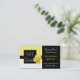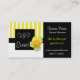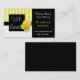 Stilvolle Geschäftskarte, mit einem wunderlichen gelben und weißen gestreiften Entwurf auf dem links, mit mit einem gerahmten Bereich für Handelsnamen, der eine hübsche Rosenblüte auf ihm hat. Textbereich auf der rechten Seite der Karte ist festes Schwarzes. Fertigen Sie diese große schauende Karte für selbst besonders an und die Schriftartart ändern, Farben, und Größen zum Anzug Ihre Gleichen, fügen mehr Textfelder auf der Rückseite hinzu, wenn Sie wollen.