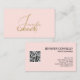 Stilvolle Visitenkarte mit rosafarbenem QR-Code. Minimalistisch beruflich mit eleganter, handgeschriebener Schrift.