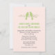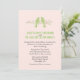 Stilvolle Hochzeitseinladung in einem sehr hellrosa Hintergrund, mit Grafiken einer grünen und rosa Blumengarage mit zwei grünen Liebesvögeln, oben. Personalisieren Sie den gesamten Text für Ihren besonderen Tag. Matching-Produkte verfügbar.