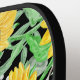Stilvolles Pickleball-Paddel mit wasserfarbenen gelben Sonnenblumen auf schwarzem Hintergrund und Ihrem Monogramm