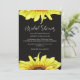 Stilvolle Watercolor Sonnenblume Schwarzer Poltera Einladung