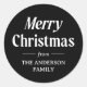 Diese minimalistischen, dunkelschwarzen Urlaubsaufkleber sind mit ultramoderner weißer Typografie versehen, die "Frohe Weihnachten" für ein einzigartiges und stilvolles Aussehen sagt.