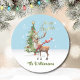 Stilvolle Weihnachtskarte der Wasserfarben-Rentier Runder Aufkleber