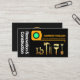 Die graue und schwarze Abdeckung wird durch ein überdimensionales gelbes Mess-Klebeband verstärkt. Unmittelbar unterhalb dieses Designs befindet sich eine Reihe von Handyhandwerkzeugen aus Gold, die einen Teil der Arbeit darstellen können, die Sie vielleicht anbieten. Oben oben befinden sich Ihr angesehener Name und Ihre Kontaktdaten gelb mit dem invertierten Firmennamen auf der links Seite der Karte. Auf der Rückseite, in einem grauen Cover, befindet sich oben ein goldenes Zuhause-Landschaftslogo, das Sie verwenden können. Danach folgen Ihr Name, Ihre Kontaktdaten und ein Slogan, um Ihre Dienste bekannt zu machen. Die Buchstaben hier sind in Imitat Gold. Ein Design für Bau- und Gebäude-Themen.