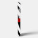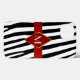 Chic Wildtier Muster iPhone Gehäuse mit einem schwarz-weiß gestreiften zebra Muster. Die hübsche Grafik eines roten Satinbändchens und einer roten Dreieck-Monogrammplatte schmückt die Mitte des Gehäuses. Personalisieren Sie das weiße Monogramm mit einem Buchstaben auf dieses großartige Gehäuse. Der perfekte Weg, um Ihr Telefon zu schützen, und sehen auch stilvoll aus.
