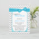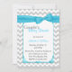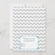 Stilvolle Babydusche in einem hellgrauen und weißen Zickzack Zickzackmuster. Die Grafiken eines türkisfarbenen, dekorativen gestrichenen weißen Textbereichs, in der Mitte, haben ein hübsches türkisfarbenes Band und Bogen, oben. Die Rückseite ist im gleichen Zickzack Muster, mit einem anderen weißen Textbereich unten. Personalisieren Sie den gesamten Text, vor und zurück zu Ihrem Anzug.