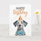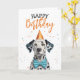 Ein Dalmatiner mit Party-Hut und Bugs-Krawatte, perfekt für ein stilvolles Geburtstagsdesign.