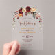 Stilvolle orange Rost Terracotta Blumenzarge Akryllische Einladungen. Mit diesen stilvollen Akrylbogen-Einladungen, die eine schöne Mischung aus Orange, Rost und Terrakotta-Blumen bieten, können Sie Ihre Hochzeitsfeier noch angenehmer gestalten. Der moderne Bogen verleiht dem Ganzen eine zeitgenössische Touch, während die warmen Herbstfarben ein gemütliches und romantisches Ambiente schaffen. Ideal für Paare, die einen eleganten und einzigartigen Weg suchen, ihren besonderen Tag zu verkünden!