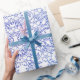 Stilvolles blaues Blumenmuster auf Weiß Geschenkpapier