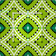 Nahtloses Dekormuster mit geometrischen Formen in Grün, Schwarz und Weiß.