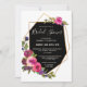 Diese einzigartige Brautdusche lädt Pop mit Stil und Eleganz ein. Es hat einen geometrischen Doppelrahmen mit schwarzem Hintergrund im mittleren Bereich. Hellrosa und violette lila Aquarellfarben-Rose wickeln sich um die oberen und unteren Ecken fügen einen femininen Pop der Farbe hinzu. Personalisieren Sie die Textvorlage mit Ihren Ereignisdetails.