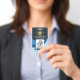 Auf der Rückseite, in einer dunkelblauen Abdeckung, ist das goldene Logo oben. Wenn Sie sich entscheiden, das Logo durch ein Foto zu ersetzen, ist die Größe 1.000 x 1.000 Pix. Danach wird die Unterschrift "Wenn verlorene Rückkehr zu". Ändern Sie die Beschriftung in Anzug Ihrer Serviceanforderungen. Als Nächstes kommen Sie zu Ihrem Namen, Mitarbeiter-Nummer, Kontaktdaten und einem Slogan, um Ihre Dienstleistungen zu veröffentlichen.