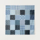 Stilvolles Design Nahtlose Patchwork-Muster aus gehefteten Quadraten mit verschiedenen geometrischen Ornamenten. Textilabdruck in blauen Farben.